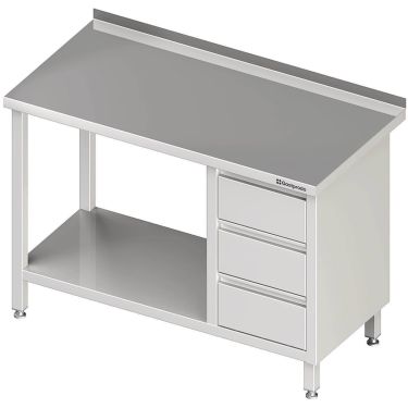 Edelstahl Arbeitstisch mit Grundboden und 3er Schubladenblock, fest verschweißt
