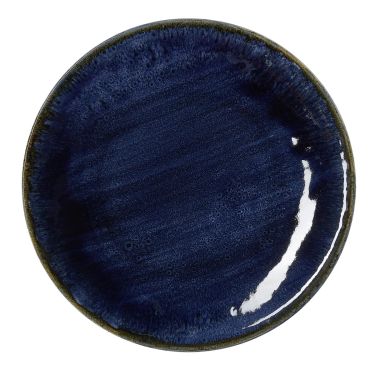 Charakterstark und handwerklich: Der Teller flach Ø 30 cm aus der Serie Vida Dark Ocean bringt mit reaktiver Glasur jedes Gericht zum Strahlen.
